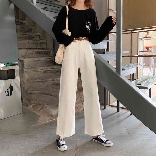 women's jeans black/white female long loose wide-legged denim trousers high waist office lady elegant flare pants with pockets empire f, Blue
