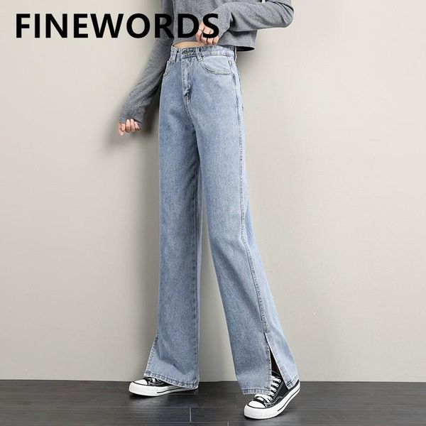 women's jeans fiords wide leg split high waist women korean casual loose straight full length streetwear retro blue denim pants