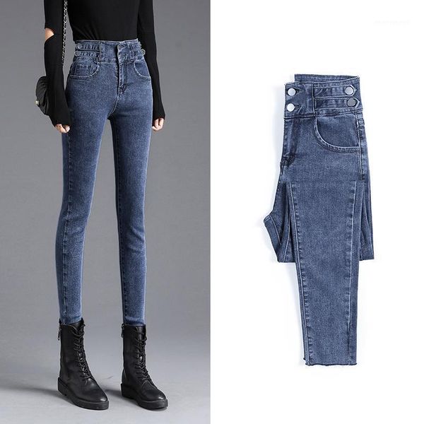 women's jeans high waist female slim body show thin 2021 autumn winter elastic tights all kinds of pencil leggings tide trousers1, Blue