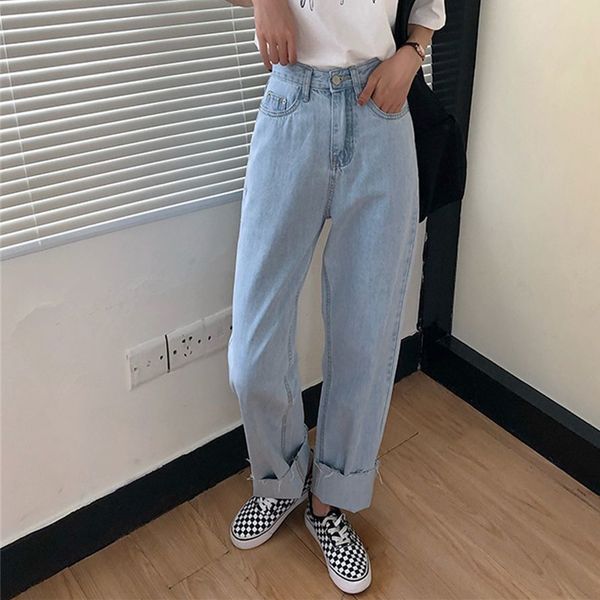 women's jeans hzirip classic female light washed fancy autumn denim casual girls oversize ol plus size brim pants fashionable 4k69, Blue