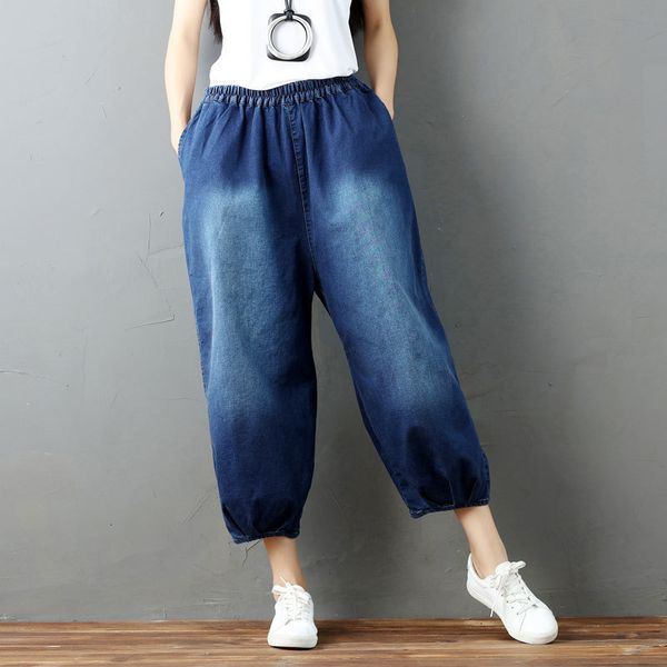 women's jeans one shirt with water will crotch pull pants cowboy wide leg bloomers sagging leisure time trousers stray remember, Blue