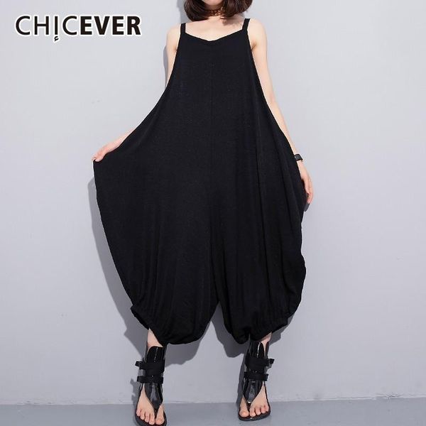 women's jumpsuits & rompers chicever summer casual solid black women jumpsuit v neck spaghetti strap backless pockets loose plus size w, Black;white