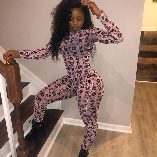 women's jumpsuits & rompers fashion women jumpsuit floral print turtleneck long sleeve autumn bodycon one-piece club party streetwear s, Black;white