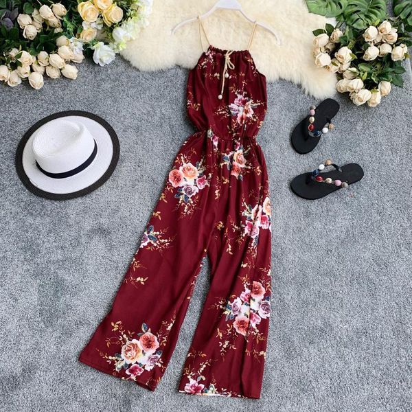 women's jumpsuits & rompers holiday sleeveless slim waist chiffon printed broad-legged women 2021 overalls f376, Black;white