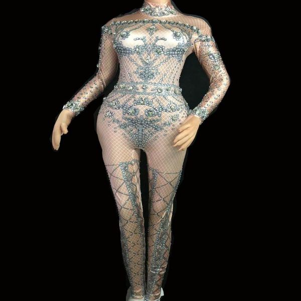 women's jumpsuits & rompers women sparkly crystals stretch jumpsuit nightclub performance female singer dance costume birthday party bo, Black;white
