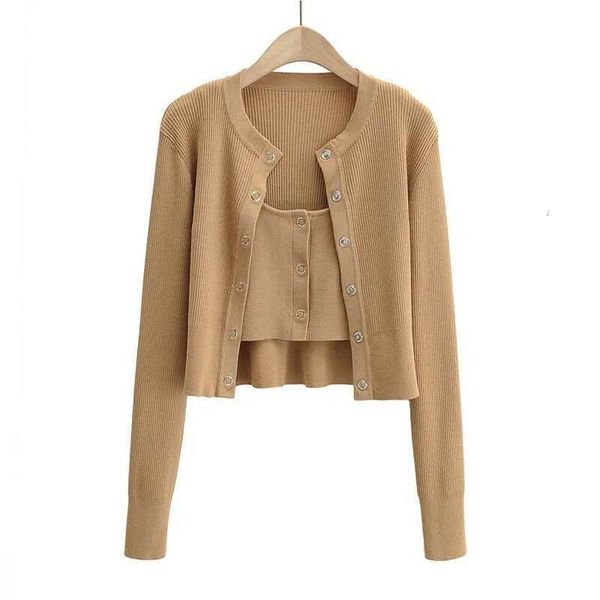 women's knits & tees 2 piece set autumn winter romantic purple knitted cardigan cropped tank single-breasted button short njmj, White