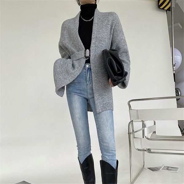women's knits & tees 2021 autumn/winter lace-up knitted cardigan women long sleeve sweater jacket loose outerwear sweaters for y92, White