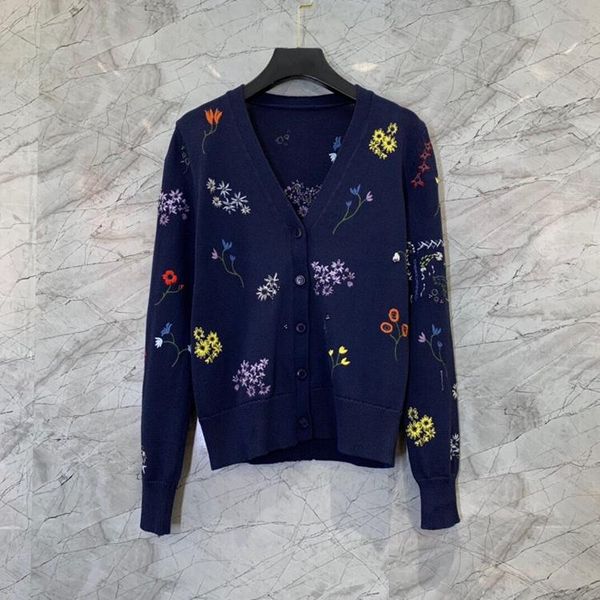 women's knits & tees 2021 women fashion v-neck embroidered flower pattern decoration long-sleeved cardigan sweater 1015, White