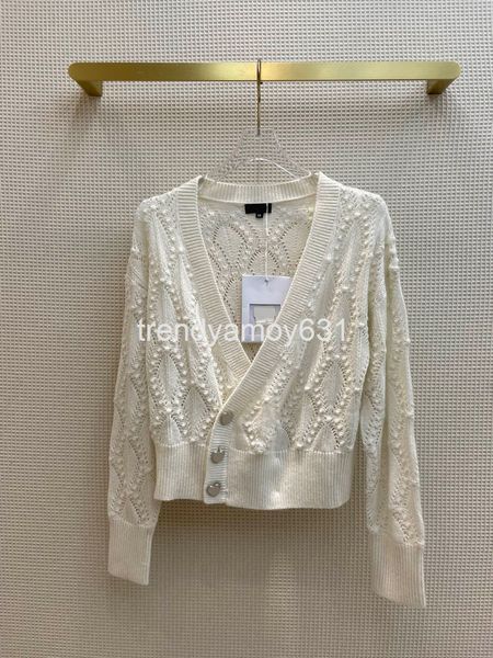 women's knits & tees autumn and winter women's wear product sweet diamond lattice hollow v-neck oblique buckle knitted button card, White