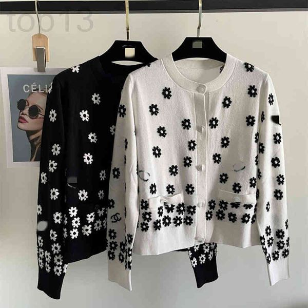 women's knits & tees designer 2022 spring and summer new small fragrance daisy heavy industry embroidery cashmere single breasted round, White