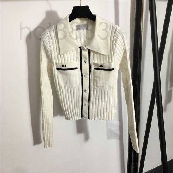 women's knits & tees designer women slim sweaters with letter buttons girls milan runway lapel neck crop shirt high end custom usa5, White