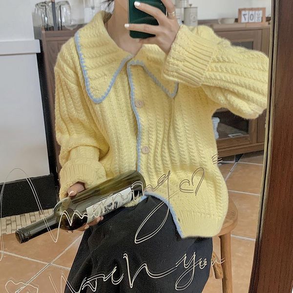 women's knits & tees neploe japanese long sleeve women loose fashion knitted cardigan coat turn down collar temperament white sweater
