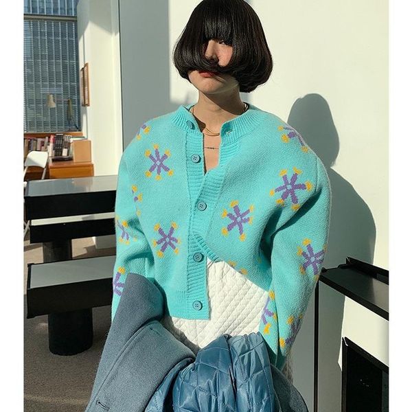 women's knits & tees temperament all-match sweater cardigan women autumn and winter fashion long-sleeved round neck knitted jacket, White