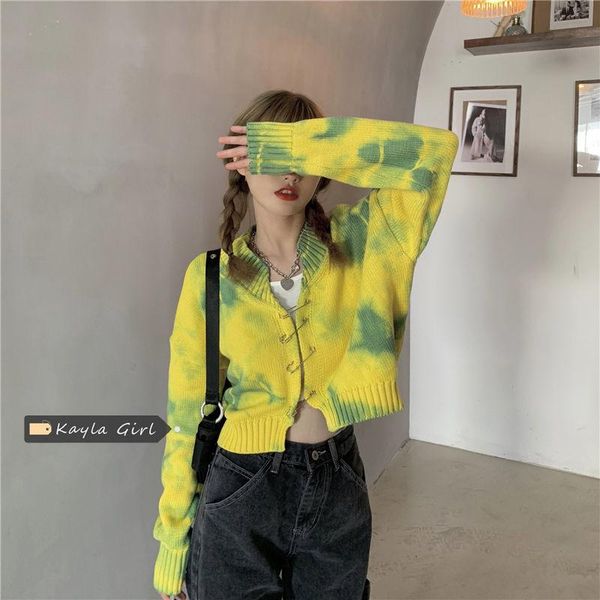 women's knits & tees tie-dyed sweater cardigan coat women 's 2021 loose short knitwear long-sleeved top, White