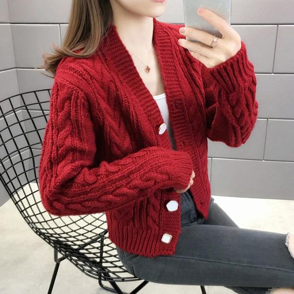 women's knits & tees women knitted solid sweater cardiga twist thread jacket button korean fashion cardigans college v-neck trend femme, White