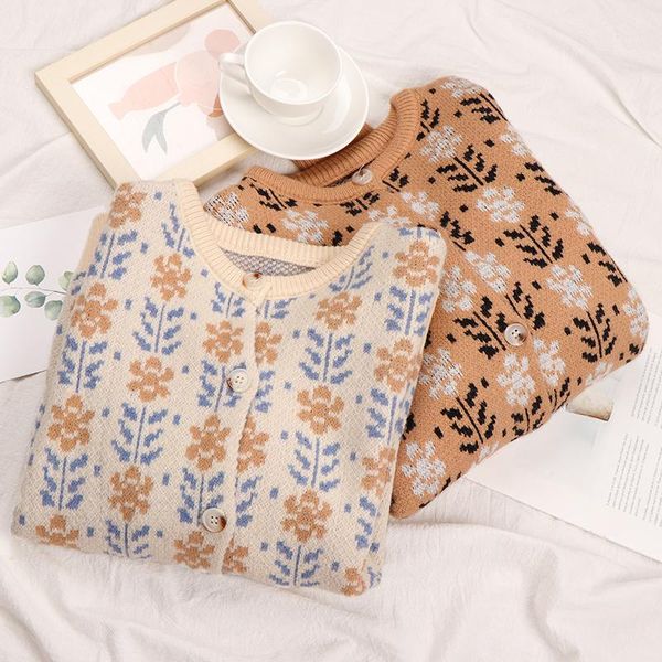 women's knits & tees women sweater knitted cardigan casual flower knit autumn female harajuku floral long sleeve outwear korean fashio, White