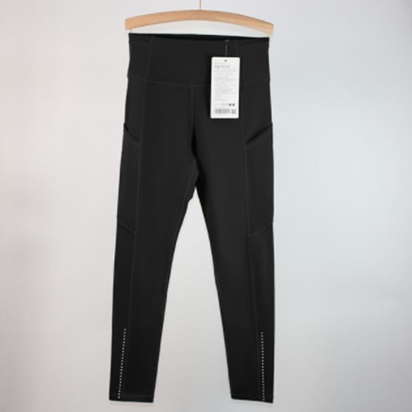 women's leggings lulu suit nylon double face brushed high waist multi pocket tights running and riding with reflective dots cropped pan