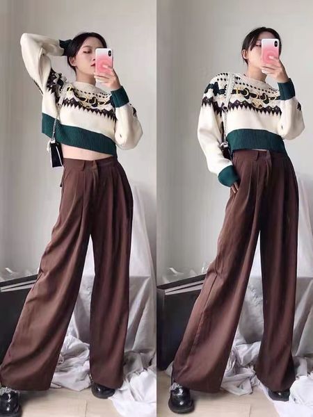women's pants & capris 170-175cm spring autumn female wide leg women long ladies vintage casual straight trousers 2021, Black;white