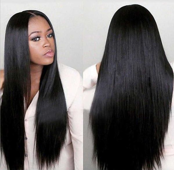 women's medium length straight wig long hair chemical fiber headgear wig overseas, Black