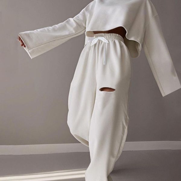 women's pants & capris 2021 simple classic solid color wild sweatpants high waist lace-up hole fitness casual female jogger beam feet s, Black;white