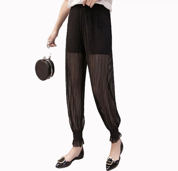 women's pants & capris flying roc 2021 summer women casual ankle length korean style femme loose mesh high waist plus size, Black;white