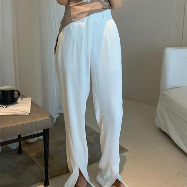 women's pants & capris hzirip plus size split floor straight 2021 solid all match high waist wide leg women loose casual oversize trous, Black;white