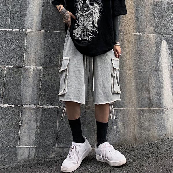 women's pants & capris loose wide straight short streetwear hip hop harajuku ribbon pocket ripped string waist jogger pant korean summe, Black;white