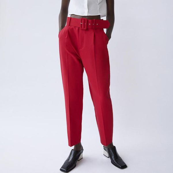 women's pants & capris malina high waisted women fashion tie belt waist trousers elegant office lady ankle length female ladies ia, Black;white