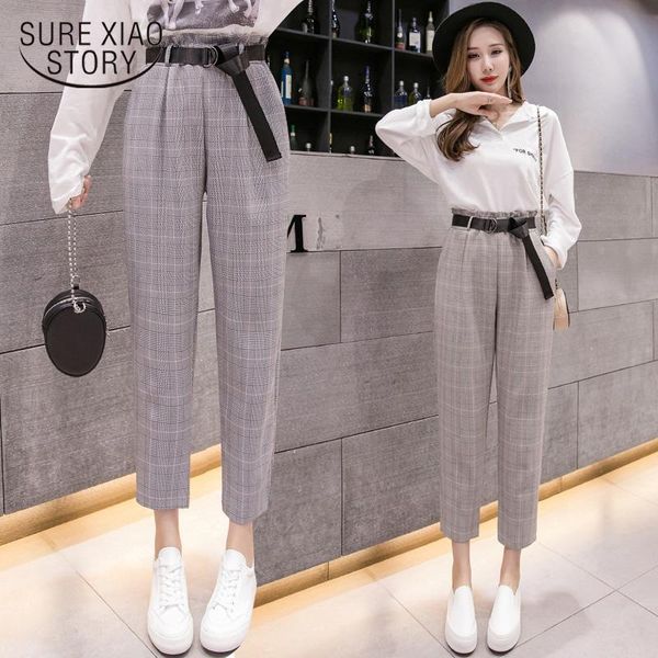 women's pants & capris plaid suit women 2021 autumn fashion high waist ankle -length harem with belt loose female trousers 7277 50, Black;white