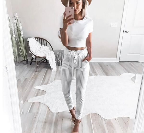 women's pants & capris striped ol cotton high waist harem women stringyselvedge summer style casual female trousers, Black;white
