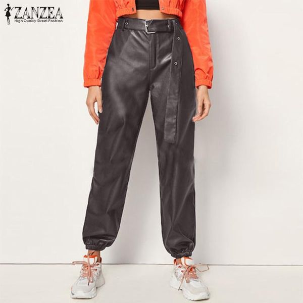 women's pants & capris summer casual pu leahter 2021 fashion solid long overalls zanzea women belt high waist pantalon trousers feamle, Black;white