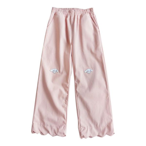 women's pants & capris wide leg cartoon appliques pockets ankle length 2021 korean style elastic waist female summer trousers, Black;white