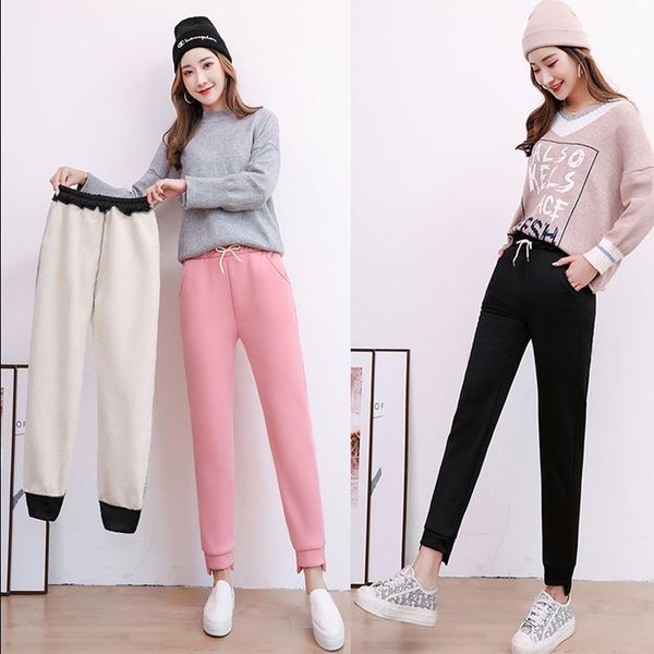 women's pants & capris winter women gym sweatpants workout fleece trousers solid thick warm female sport running pantalones mujer x50, Black;white