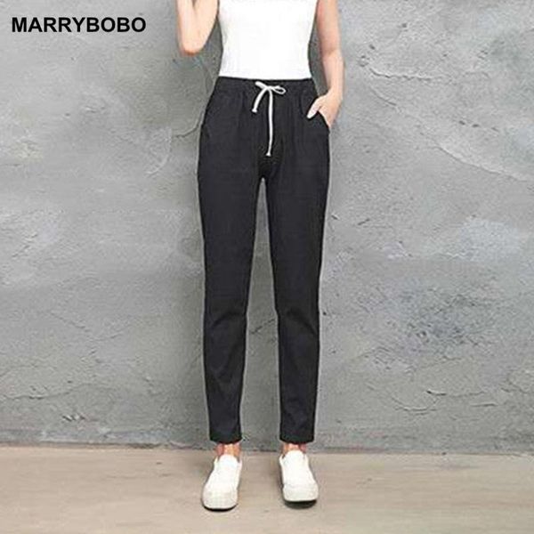 women's pants & capris women autumn high waist harem korean solid slim trousers 2021 casual harajuku elastic cotton linen, Black;white