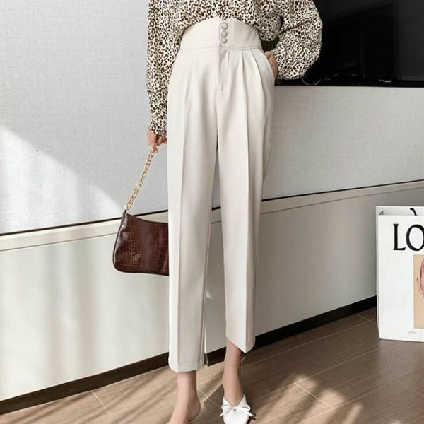 women's pants & capris women black buttons casual harem 2021 chic high waist pleated pant office lady spring summer temperament trouser, Black;white