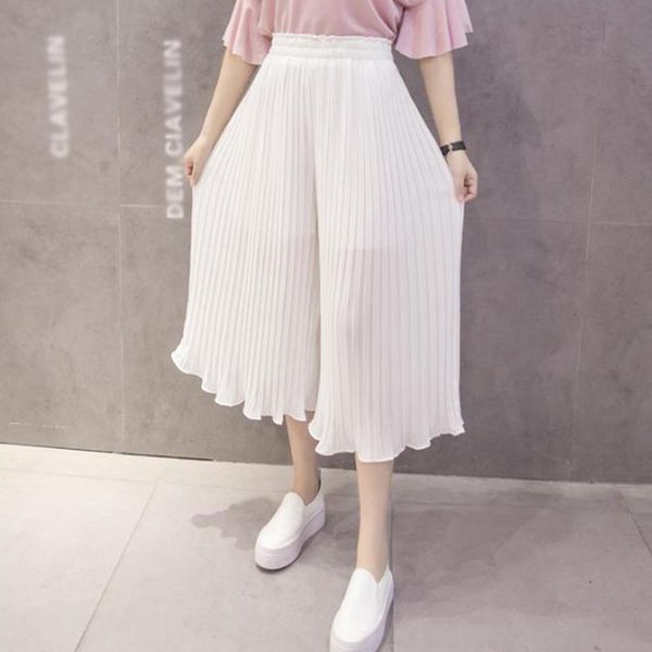 women's pants & capris women summer chiffon wide leg skirt 2021 sweet elastic waist midi-length loose culottes pantalon trousers girl, Black;white