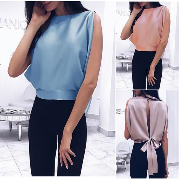 women's polos 2021 summer ladies pure color sweet vest bow knot halter bat shirt round neck t casual, White