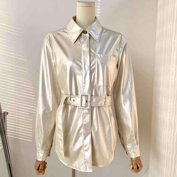 women's polos foreign trade original single foreign style fashion street s ins long sleeve irregular front back short design pu leather, White