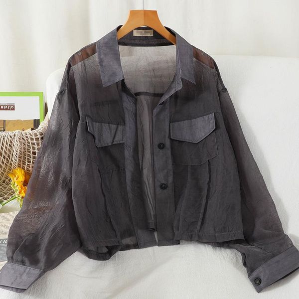 women's polos thin loose sunscreen shirt summer short jacket long-sleeved korean version of all-match women, White