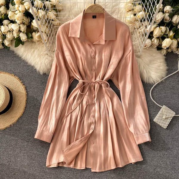 women's shirt dress spring summer turn down collar long sleeve single breasted back lace up bandage causual short dresses casual, Black;gray