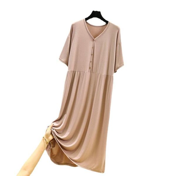 women's sleepwear 2021 loose plus size half sleeve modal nightdress female summer thin maternity long dress black sleeping women sleep, Black;red