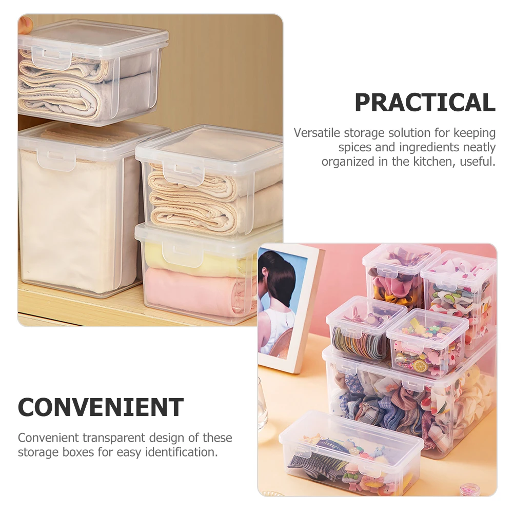 6pcs Clear Storage Boxes Stackable Transparent Organizer Containers Hinged Lids Multifunctional Small Item Organizer Kitchen