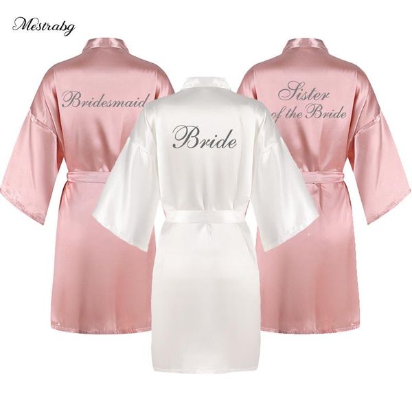 women's sleepwear dusty pink robes women silver writing party bride dressing gown satin silk short wedding gift bridesmaid team bathrob, Black;red