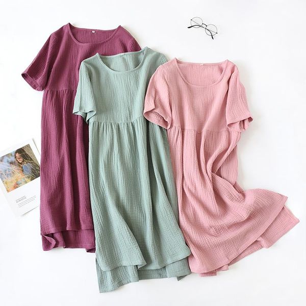 women's sleepwear summer cotton nightdress 100% women short-sleeved large size loose home night dress clothes, Black;red