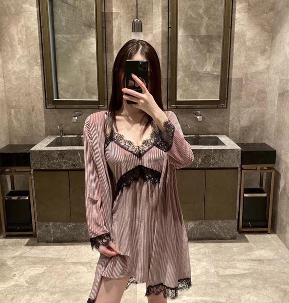 women's sleepwear velour lace patchwork robe suit women 2pcs autumn nighty&robe set female v-neck sleep casual kimono gown, Black;red