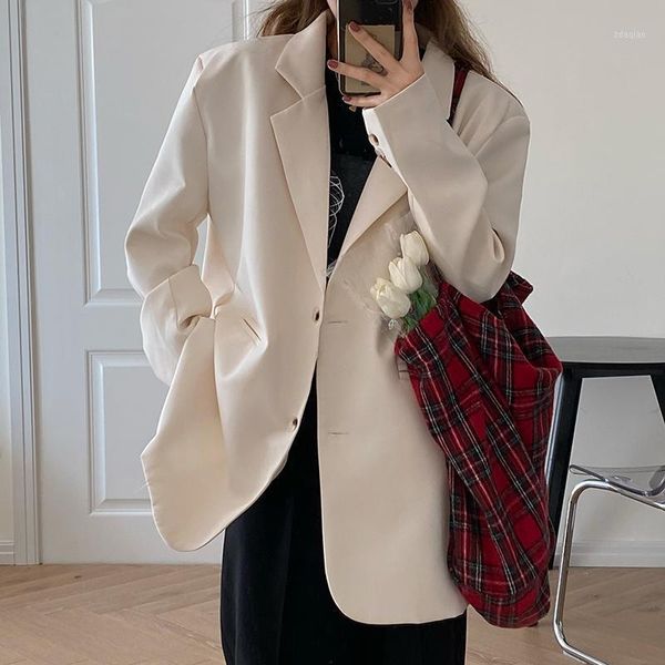 women's suits & blazers alien kitty 2021 spring white blazer jacket temperament casual solid color shoulder pads commute simplicity coa, White;black