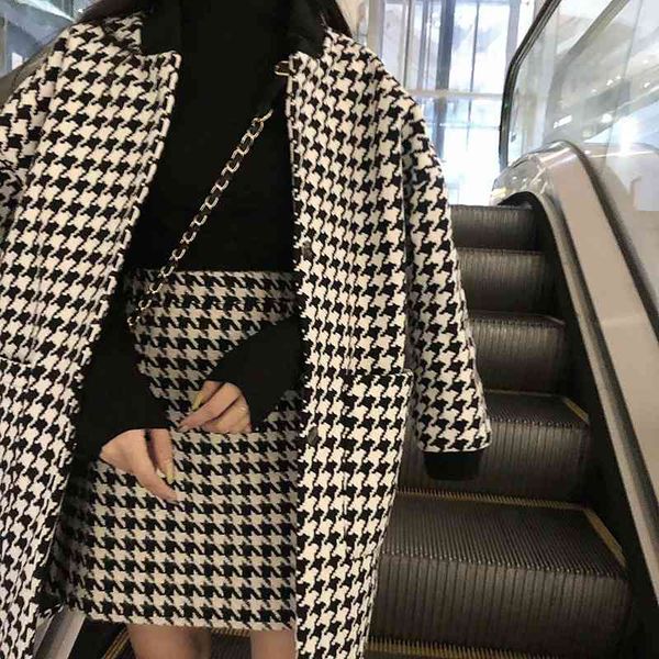 women's suits & blazers black and white houndstooth jacket women's autumn winter woolen cashmere stitched nine-quarter sleeves pi5, White;black