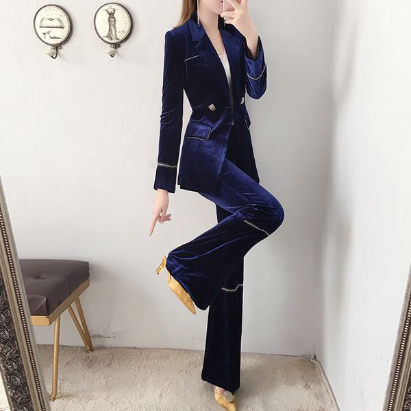 women's suits & blazers gold velvet micro-flared pants fashion thick autumn and winter clothing high-end temperament professional two-p, White;black