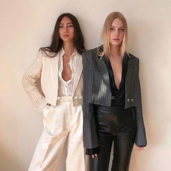 women's suits & blazers wenfly women long sleeve striped double-button elegant office lady notched trendy all-match womens commuters ul, White;black
