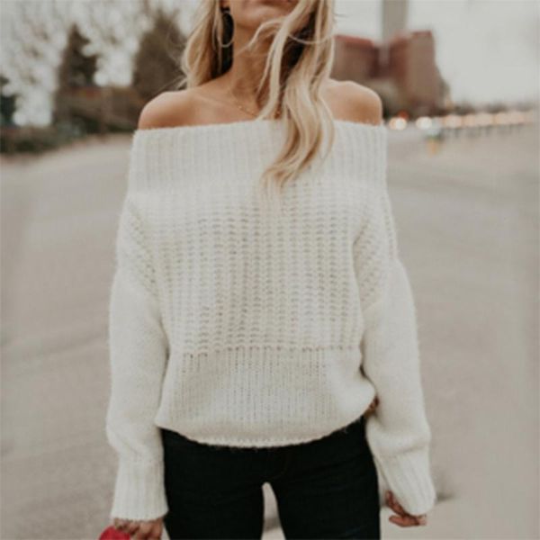 women's sweaters 2021 elegant knit slash neck solid sweater jumper pullover long sleeve female knitwear sweaterew autumn winter women f, White;black